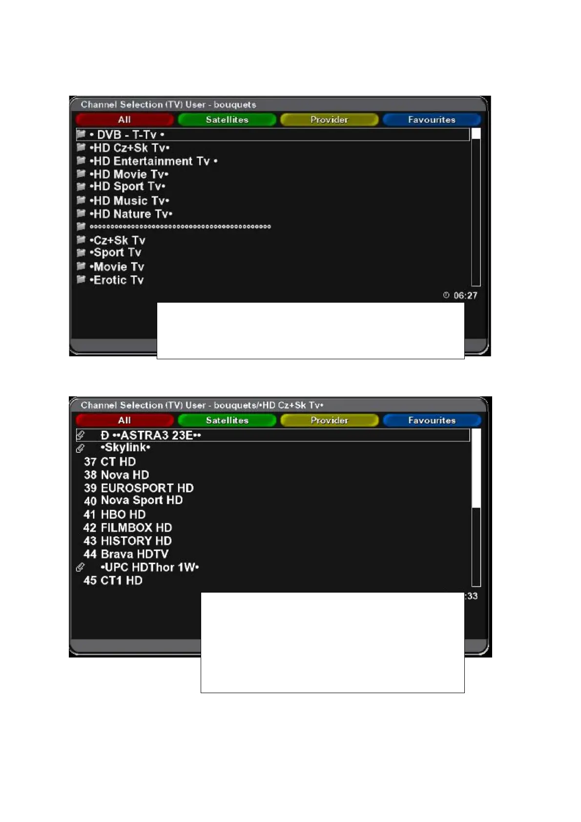 Channel sort, favourites groups - bouquets.