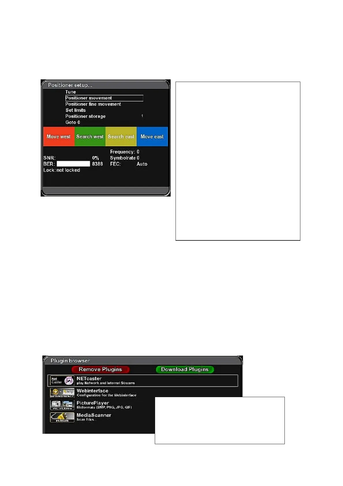 (Menu – Setup – Service Searching – Positioner setup)