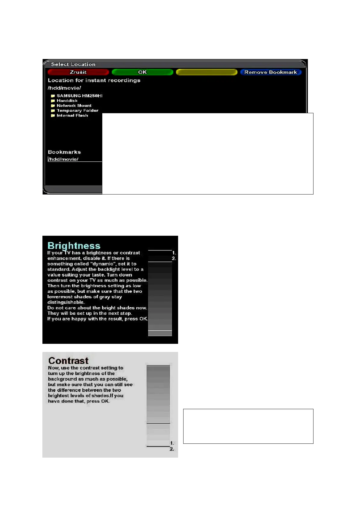 TV to adjust „Brightness“ and „Contrast“
