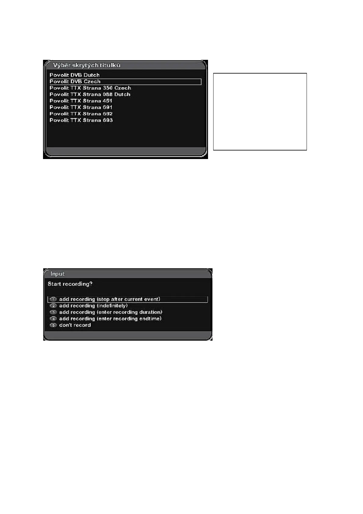 selection (except for option “don’t record – this option cancels recording).