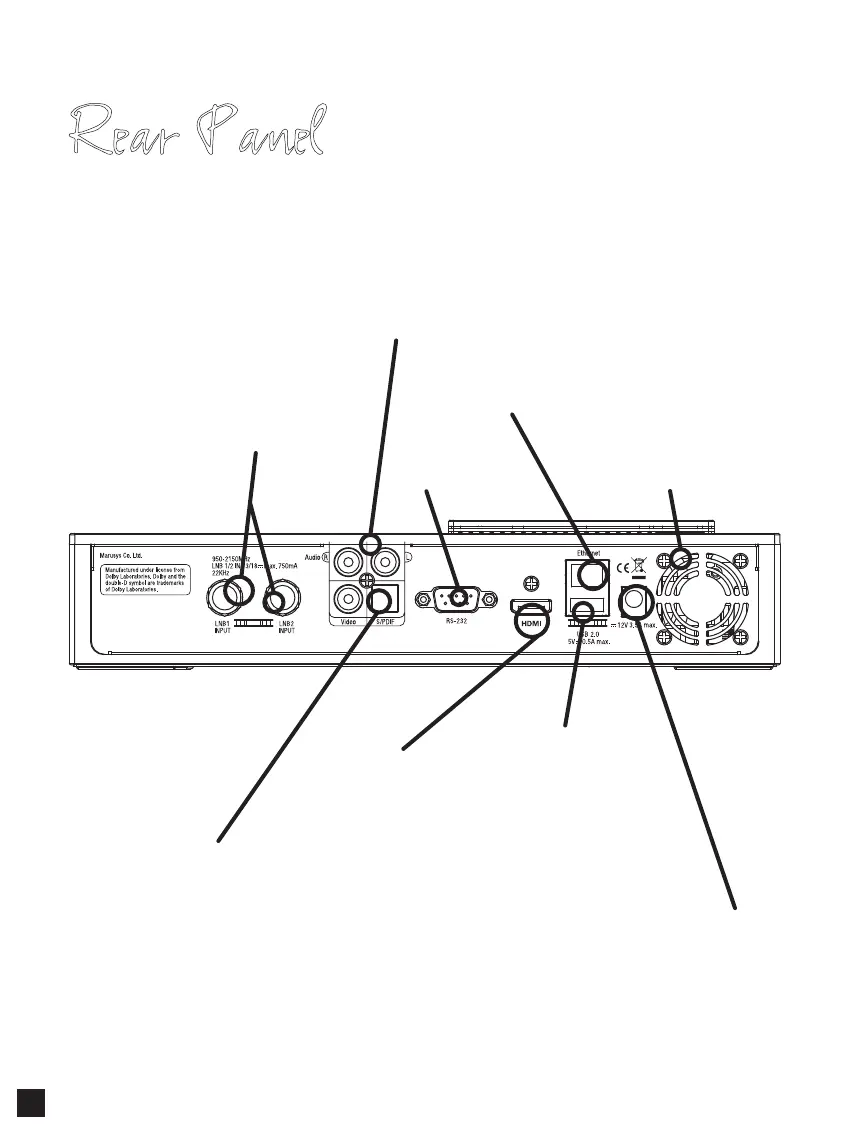 AB IPBox Prismcube Ruby - Rear Panel Connections; Satellite Signal Inputs; External Connectivity Ports; Power and Cooling
