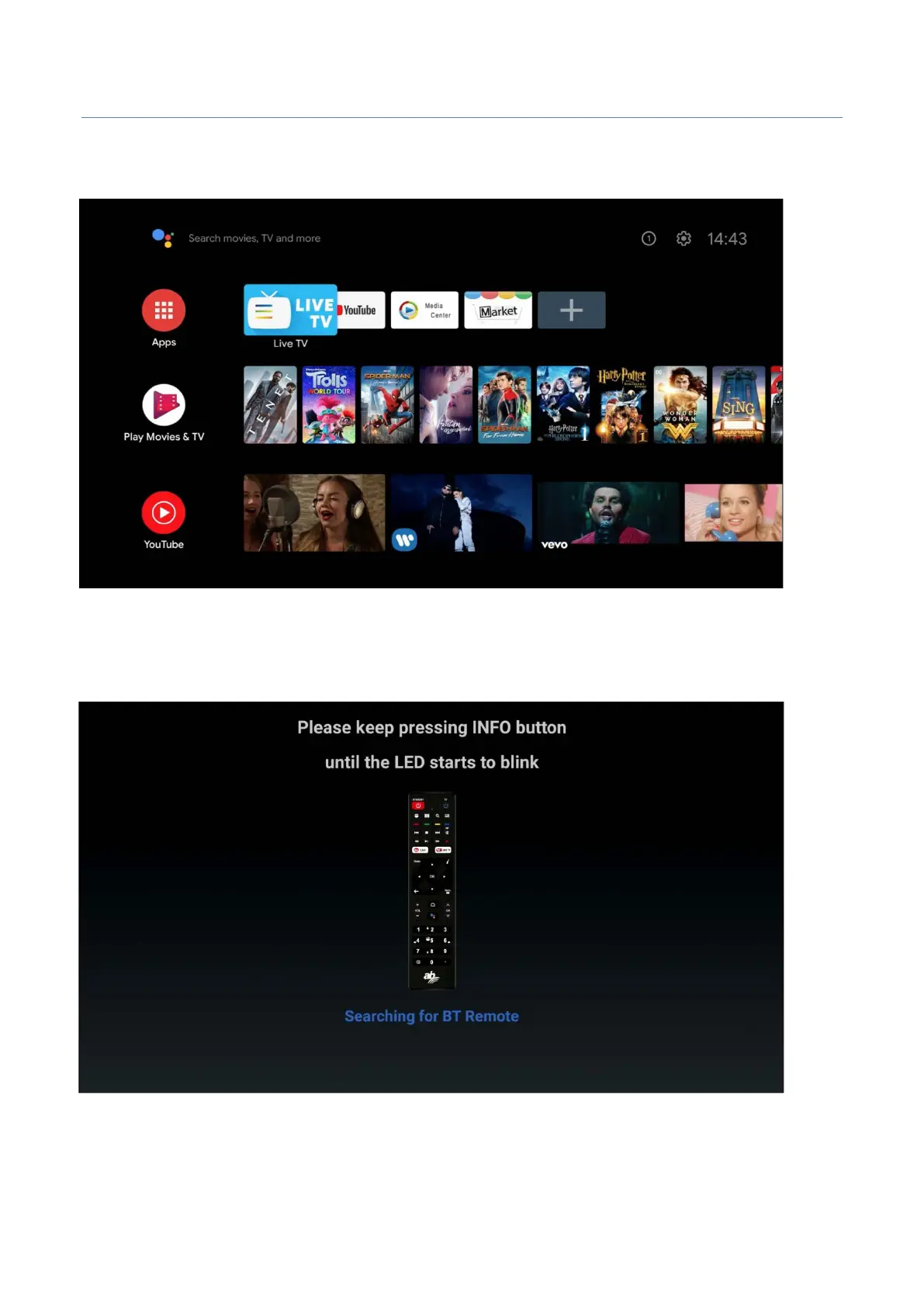 RCU point to the device, press and hold the "i" button until the LED starts flashing.