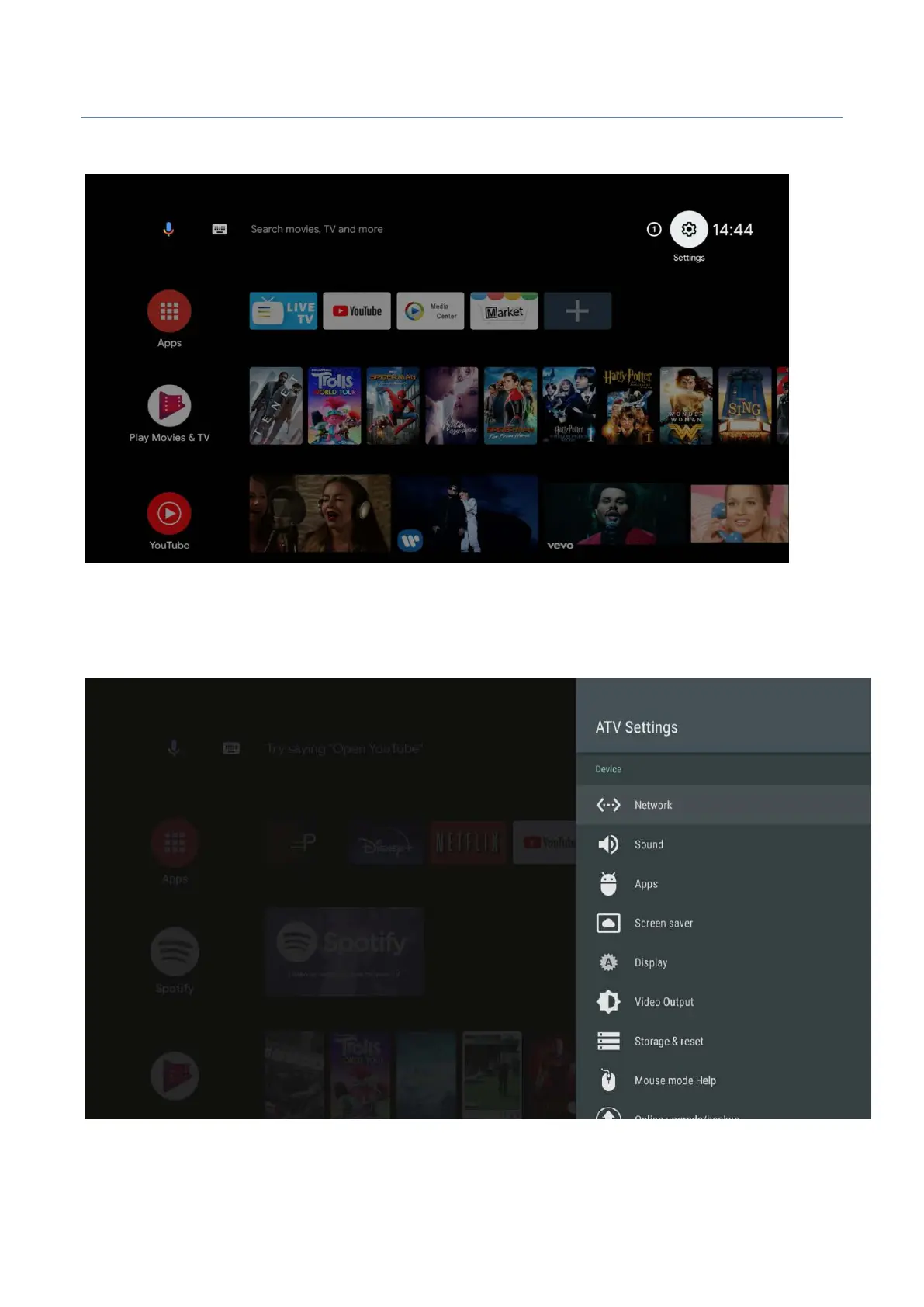 Start screen of Settings-Network.