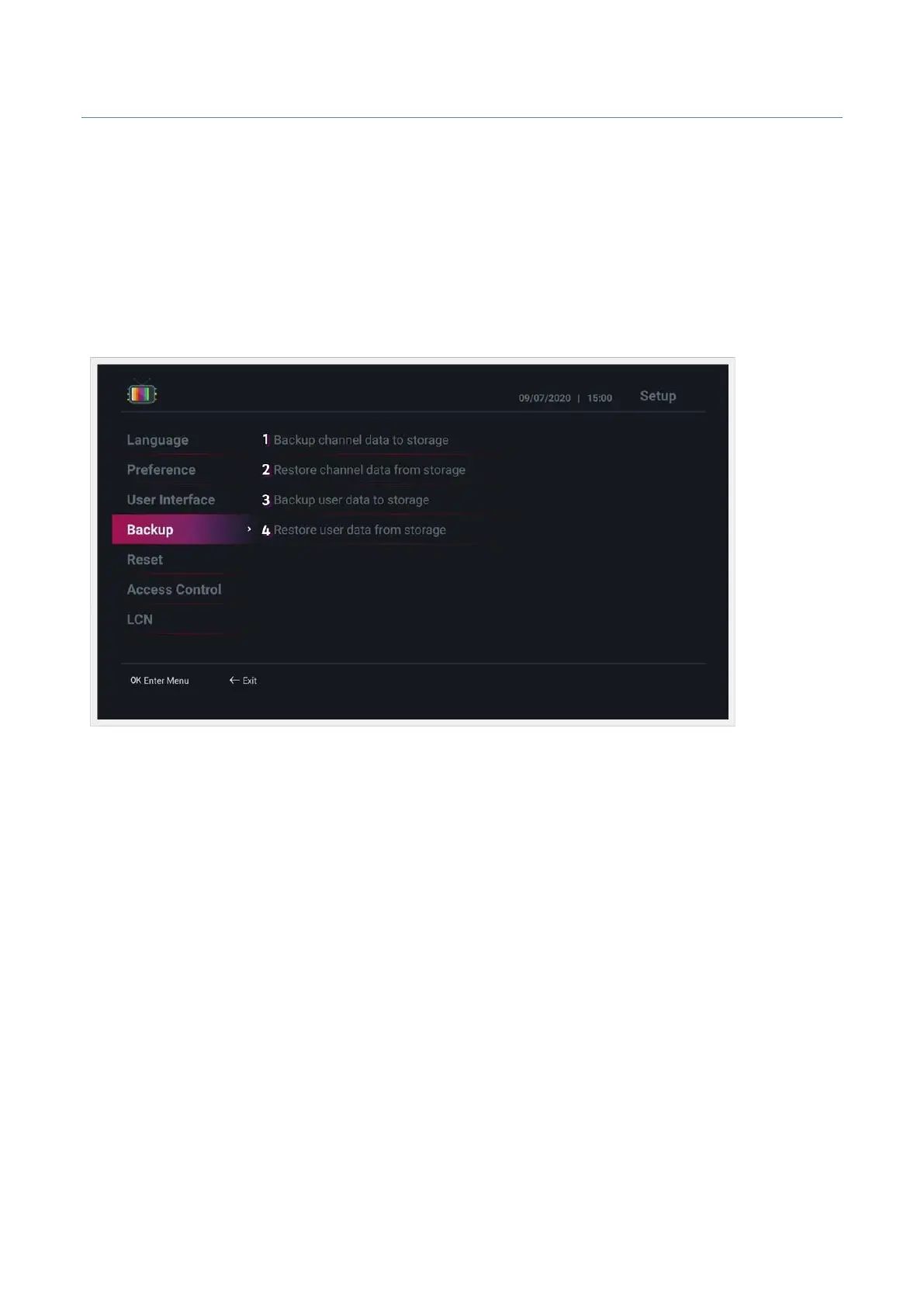 1. Backup channel data to storage : Backup channel data to USB storage.