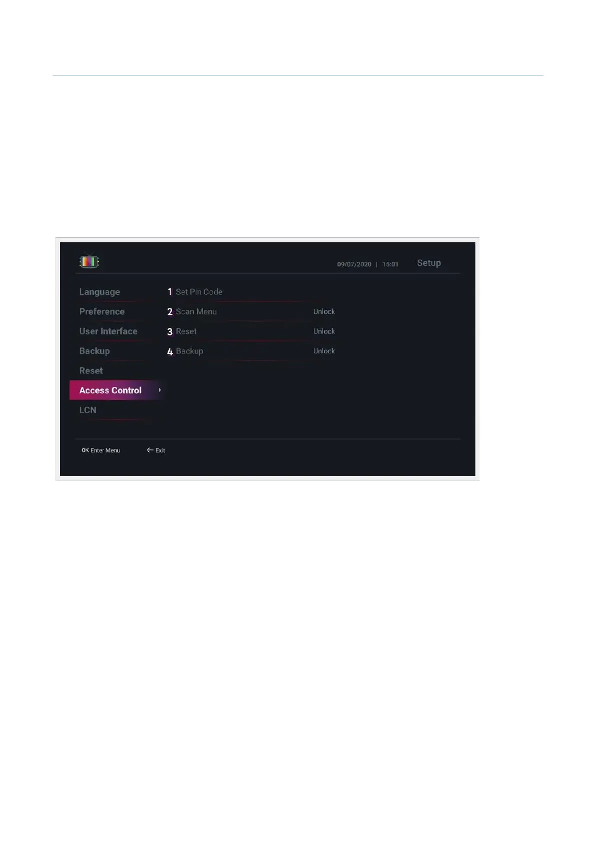 4. Backup : Set the access authority of the backup menu. (Unlock / Lock)