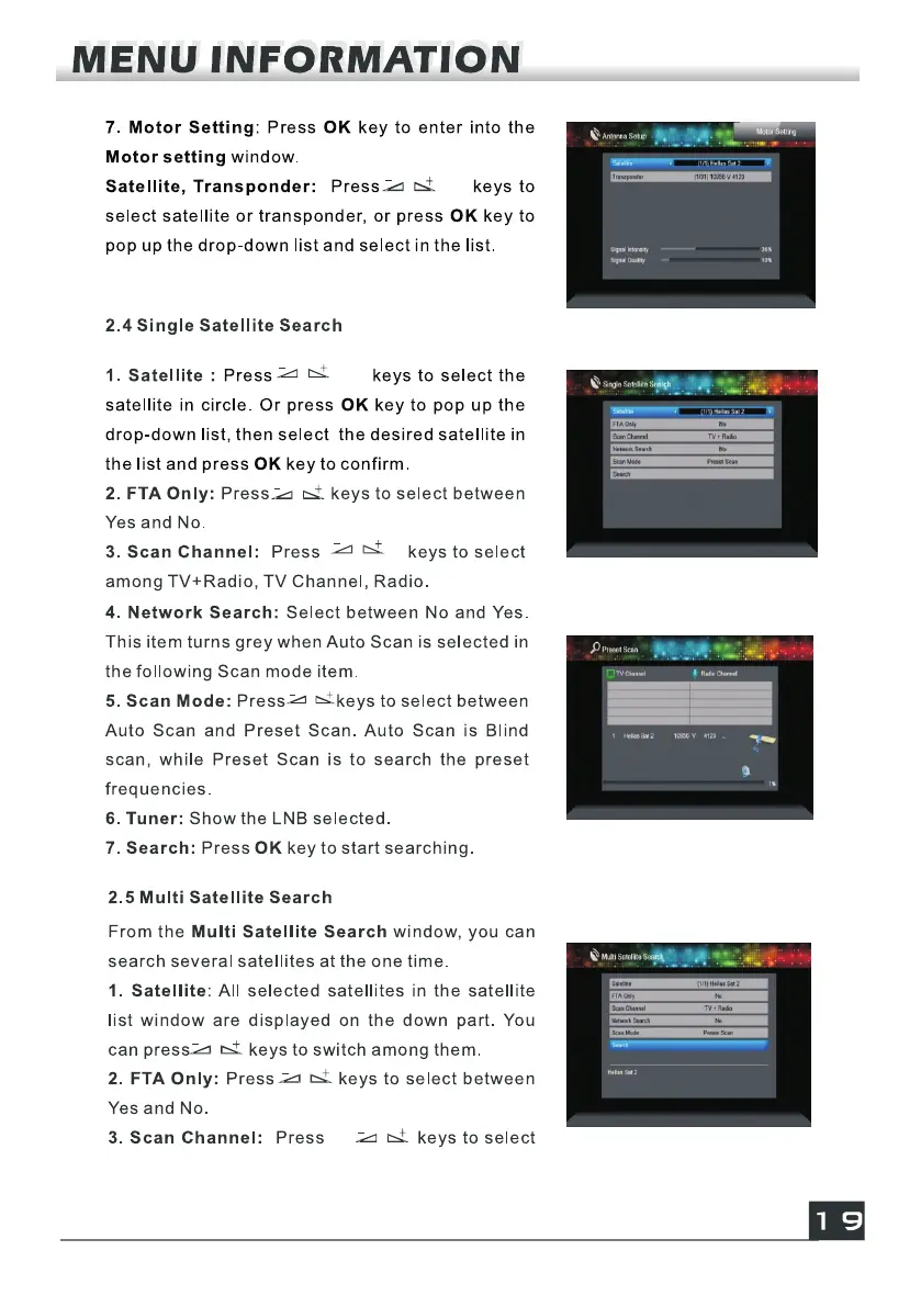 ab CryptoBox 400HD - Motor Setting; Single Satellite Search; Multi Satellite Search