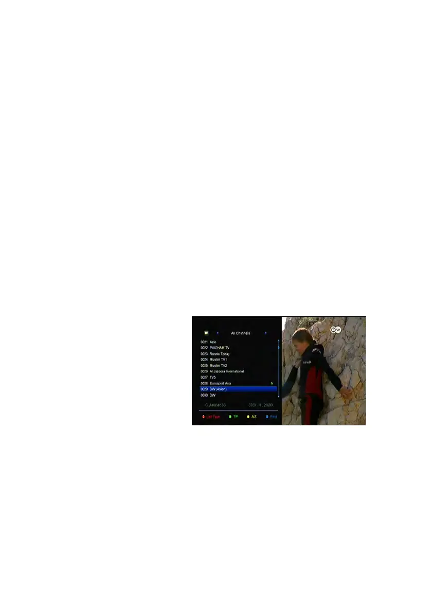 operating on a channel list, press OK to confirm, then all the channels of this sat will