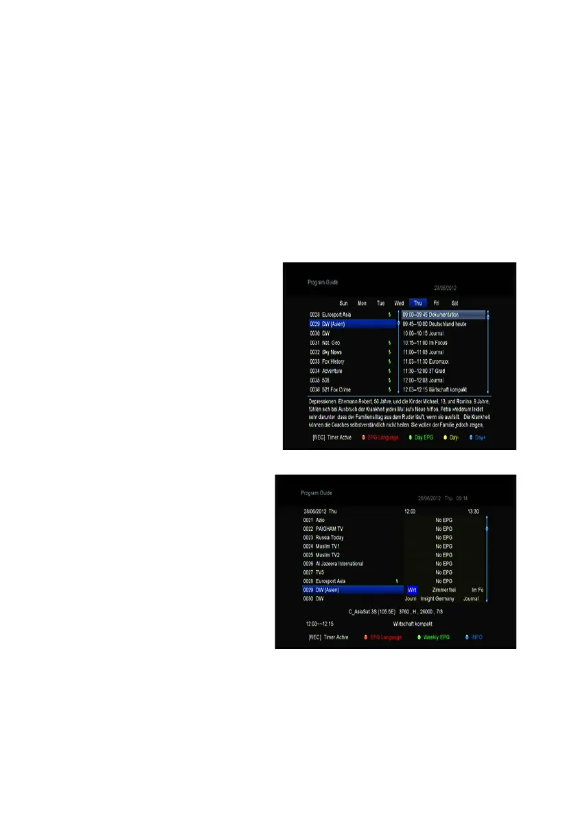2. Press the GREEN button to switch EPG mode between Weekly EPG and Day