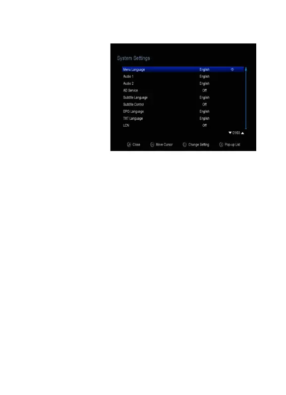 5. Subtitle Language: Set the subtitle language.