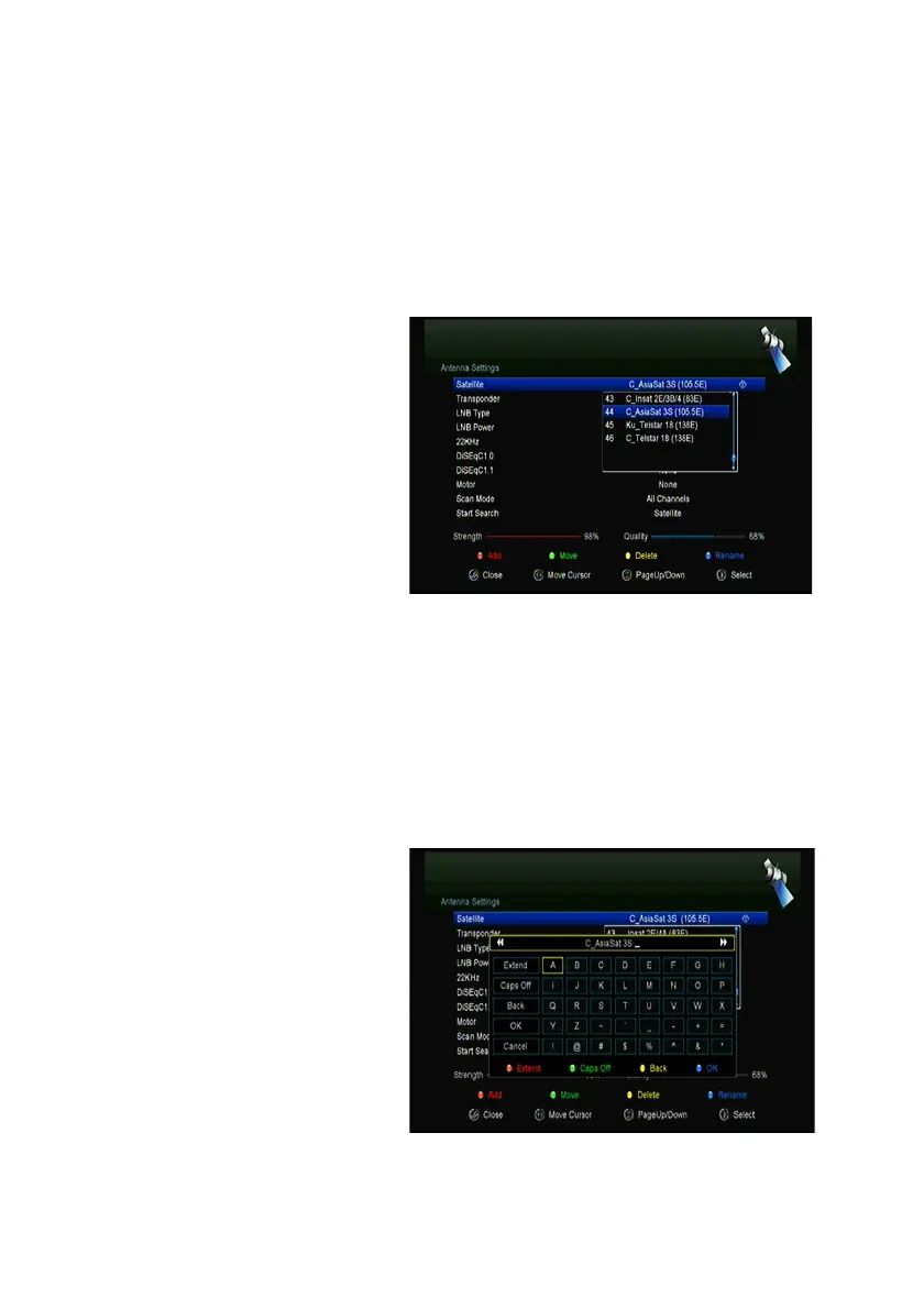 In this menu, you can Select the satellite that you want to move from the satellite