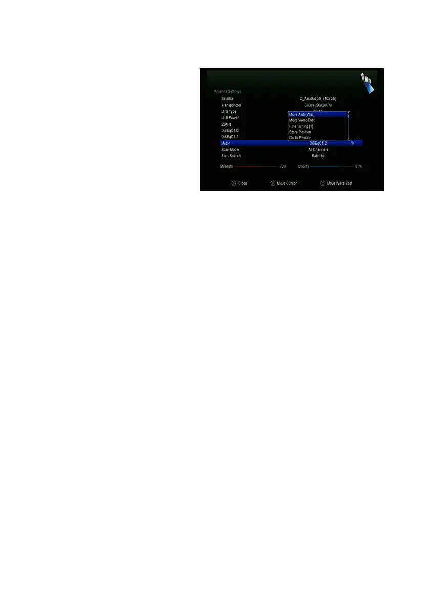 Press ◄/► button, the dish will be motorized to East/West continuously, it will