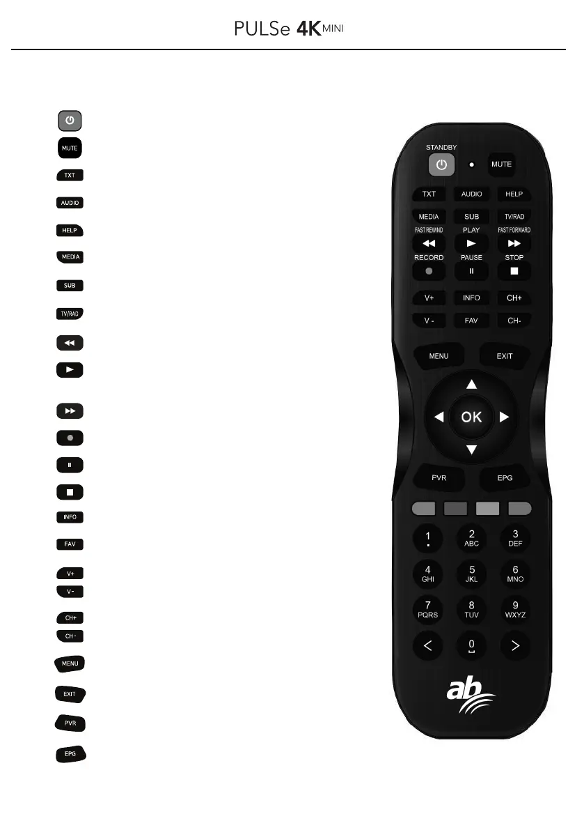 ab PULSe 4K MINI - Fernbedienung (RCU); Tasten