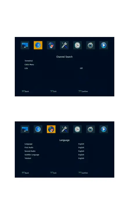 T2,Cable menu is for DVB-C.Select an option and press RIGHT/LEFT to adjust
