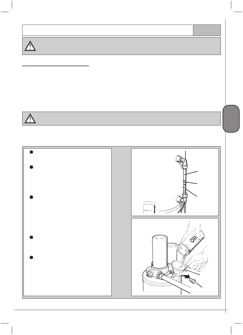 Never let the oil drop to a level which is no longer visible through the reference level tube