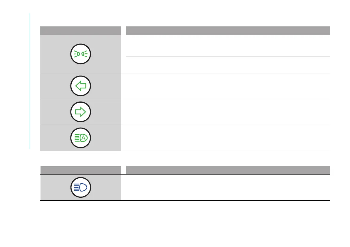 The warning light turns on when the direction indicator control stalk is moved upwards or, together