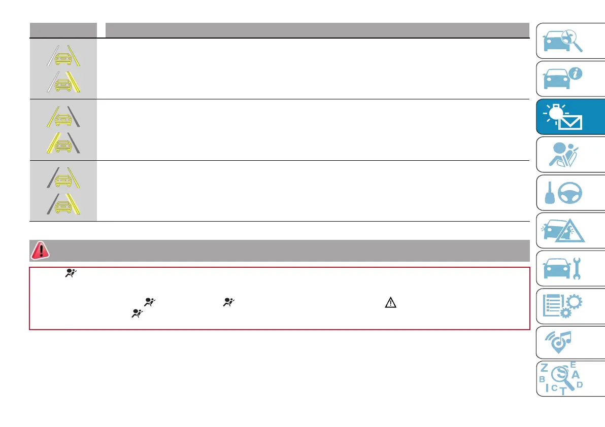 Car close to the right side line. The right line is fixed or flashing according to the versions/markets.