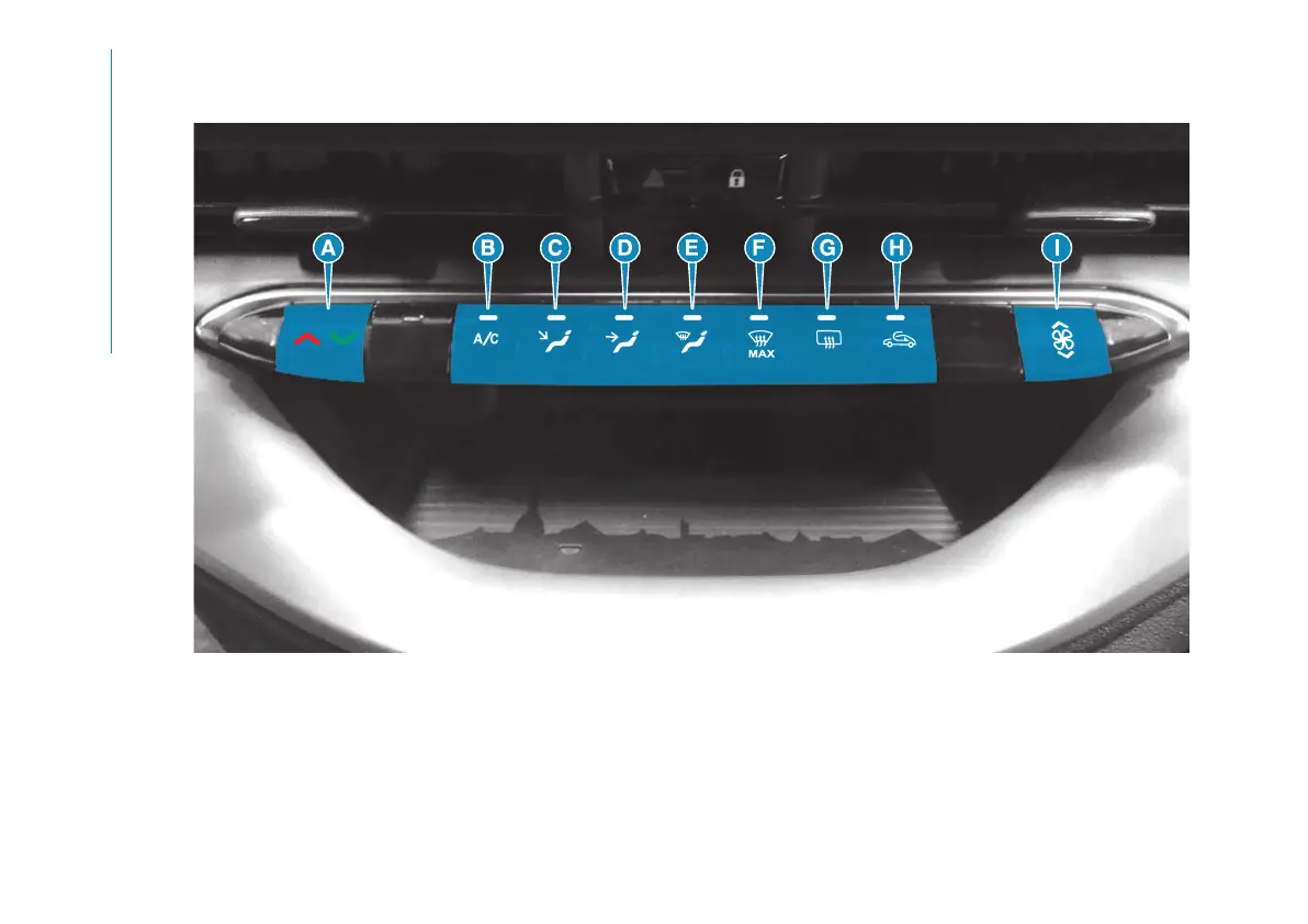 button H. internal air recirculation on/off button I. fan speed adjusting button