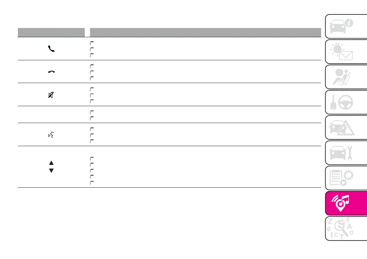 Short press(phone mode):selection ofnext/previouscall (onlywith callbrowsing active)