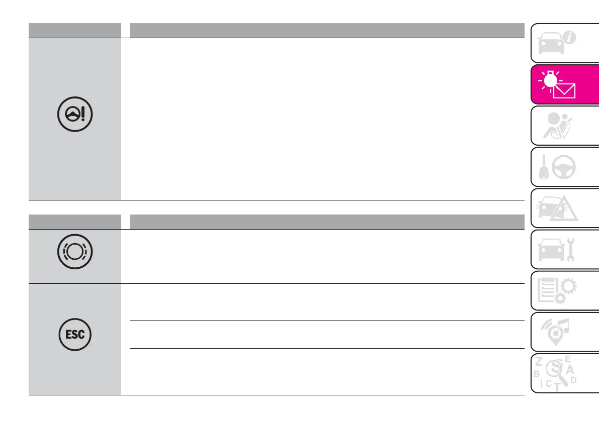 The warninglight switcheson, togetherwith adedicated message onthe displayon someversions, ifthe frontor