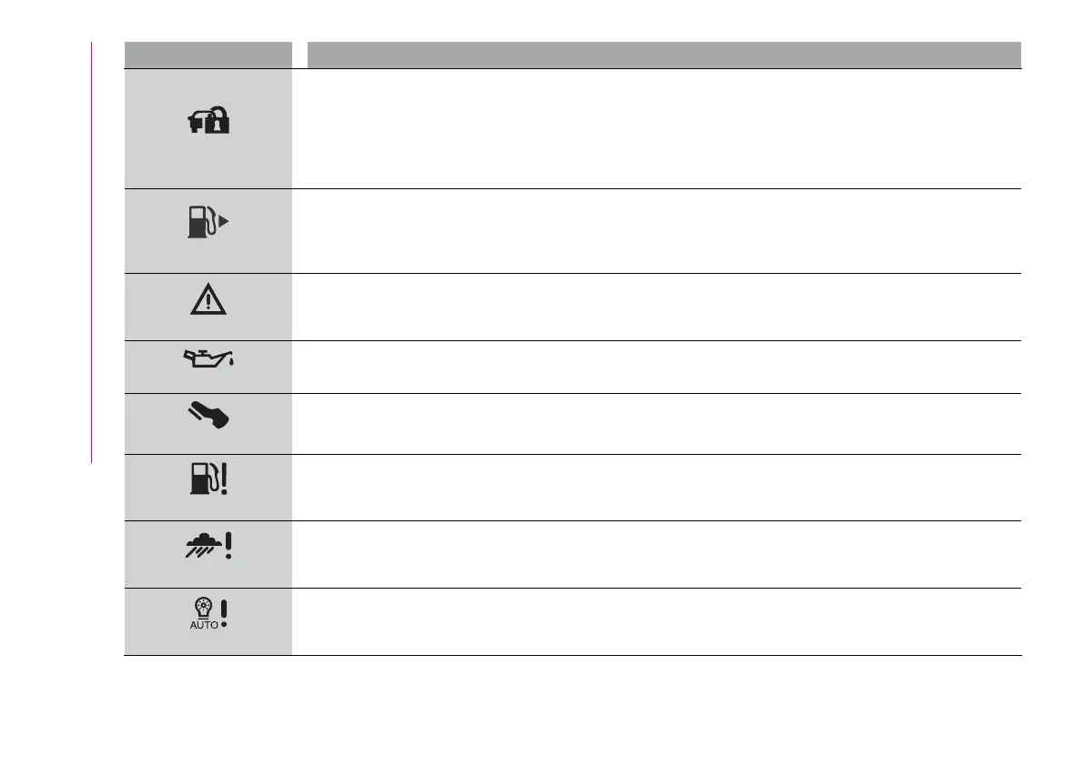 This symbolturns onto indicatethat theclutch pedalmust bepressed toenable starting.