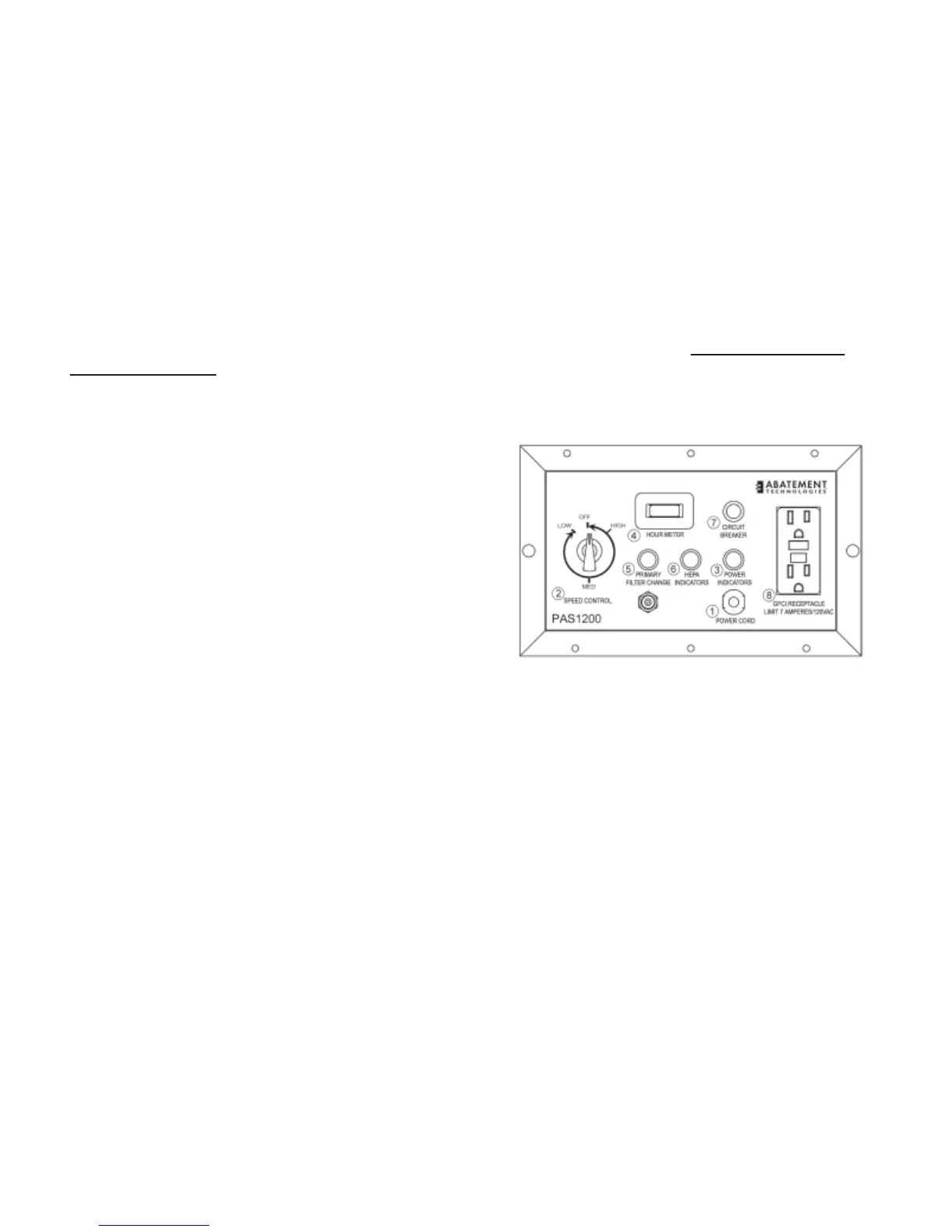 6. Filter Change Indicator - HEPA - Amber light that indicates excessive restriction on air exhaust or