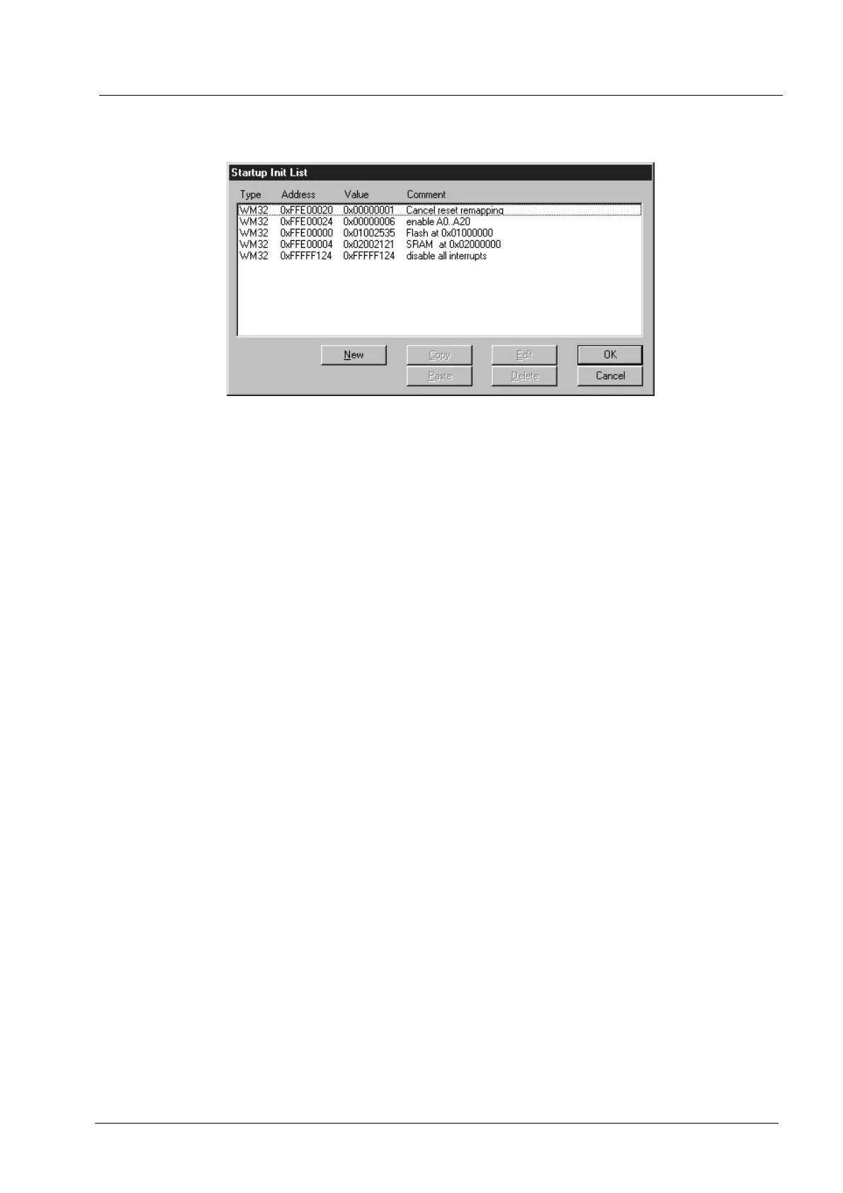 In order to prepare the target for debugging, you can define an Initialization List. This list is stored in
