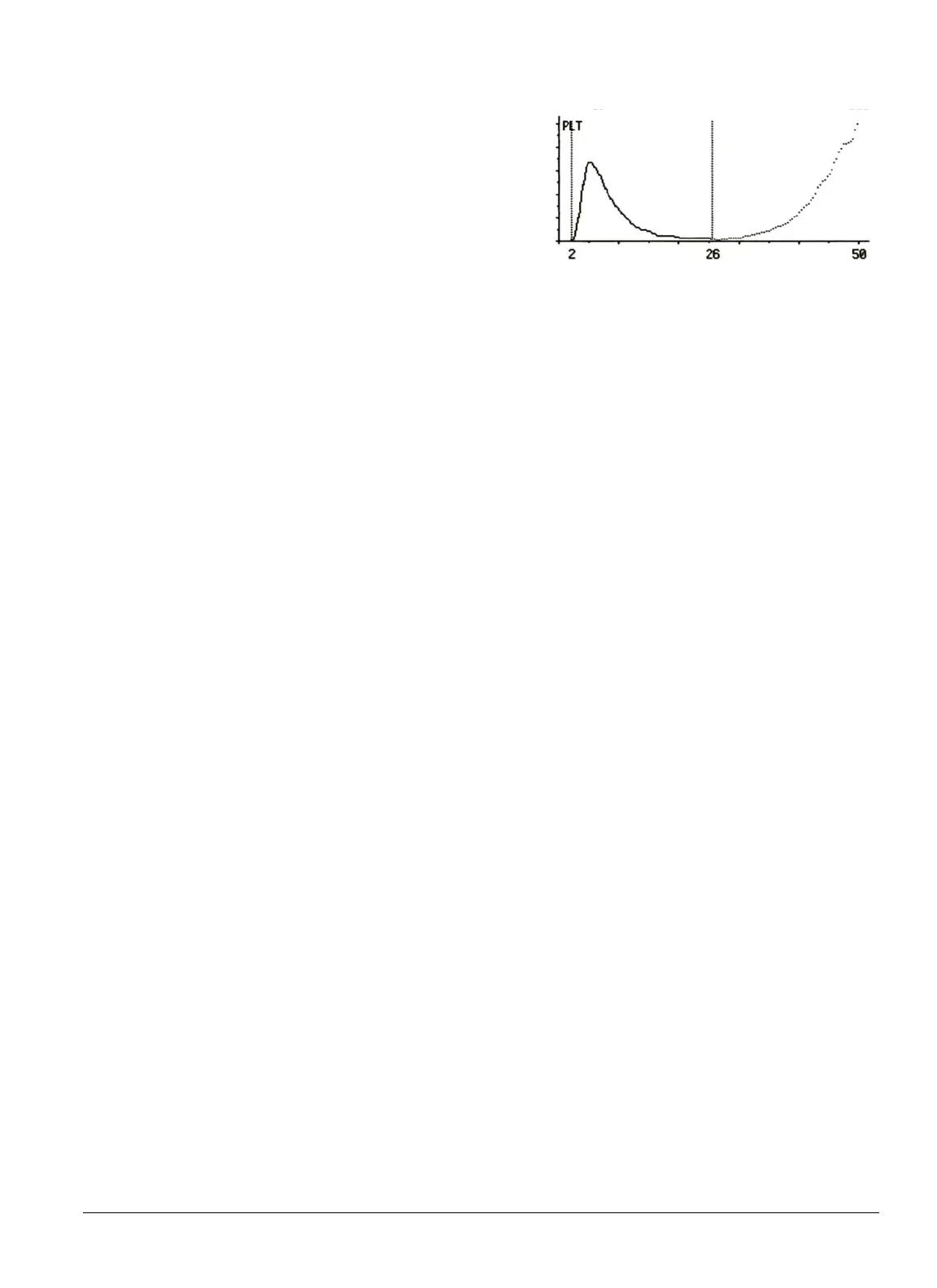 grams results from aggregated (clumped) platelets. This appears as a flattened, lumpy histogram that
