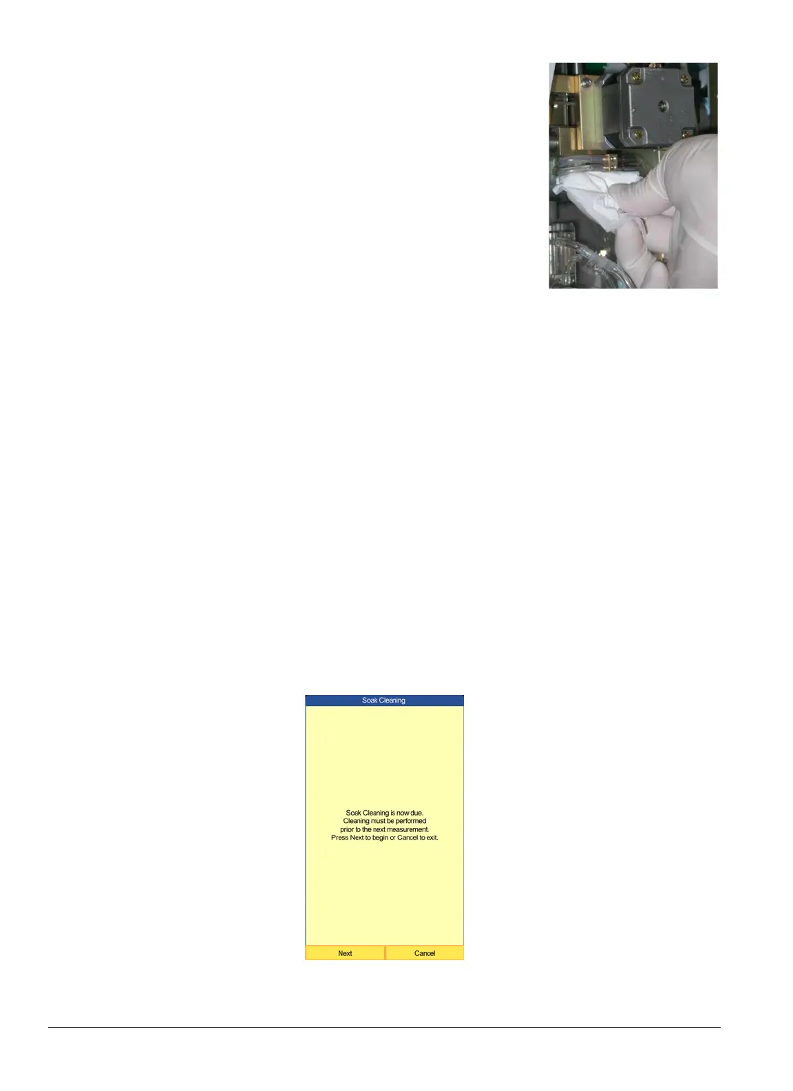 1. The analyzer displays reminders when a Soak Cleaning is needed. When this occurs, select