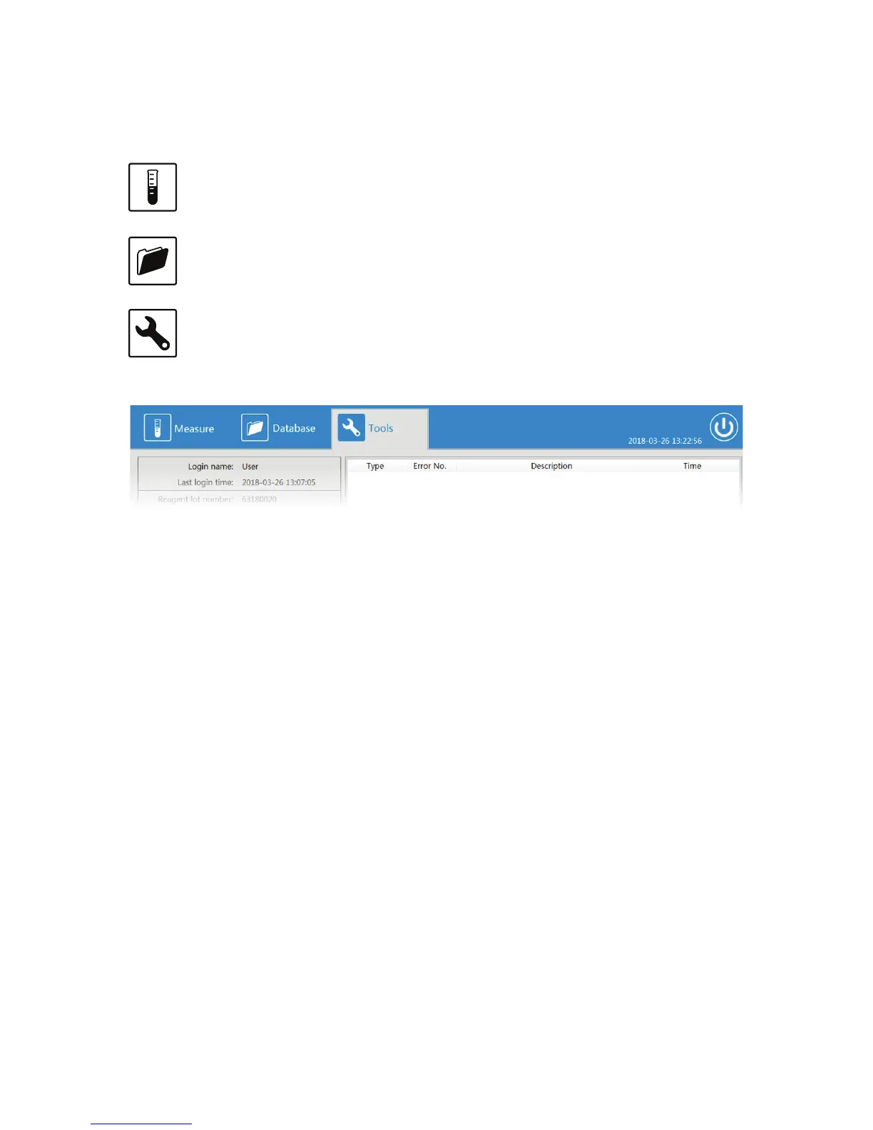 Tools is for changing settings and maintenance of the analyzer.
