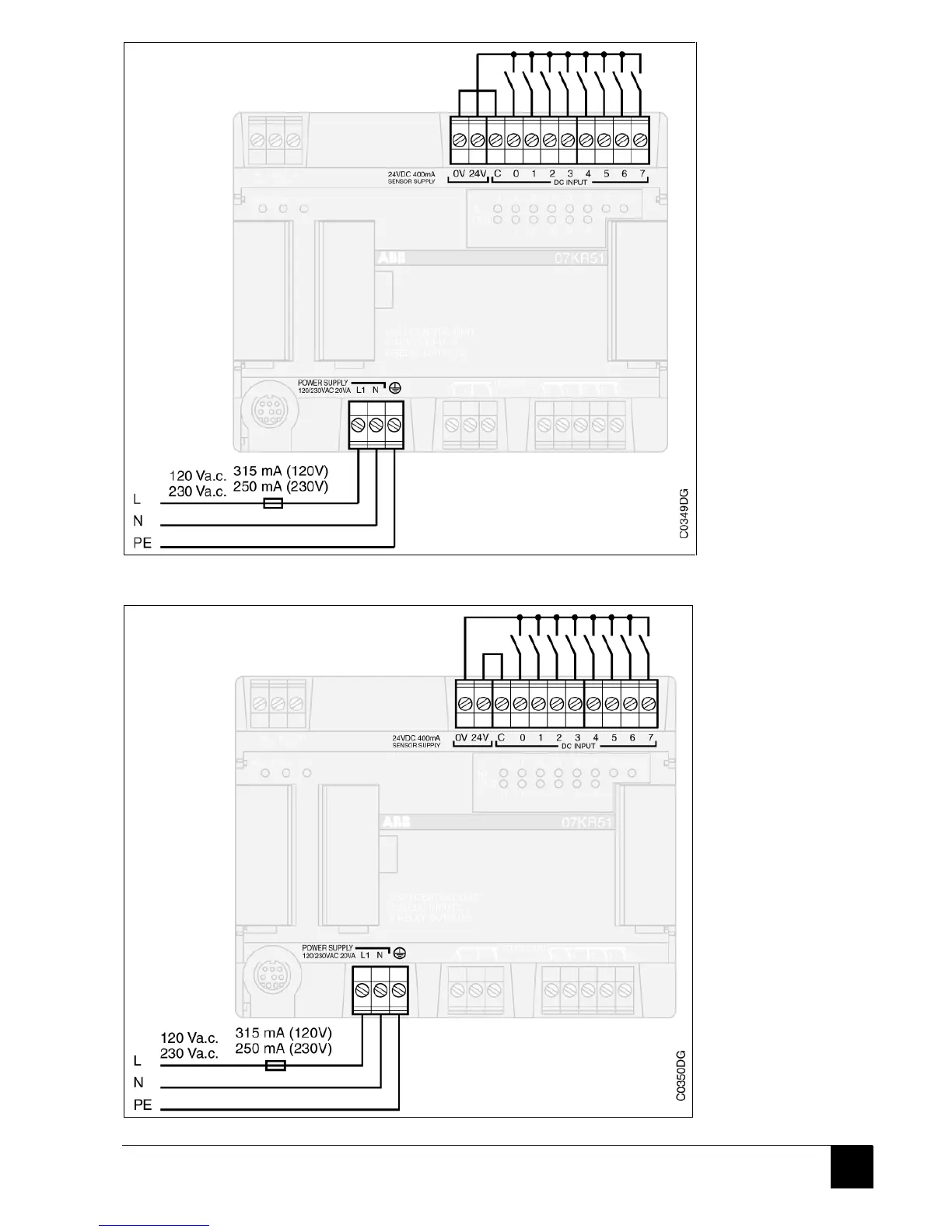 Figure 14: Positive logical inputs PNP 120/230 V a.c. power supply