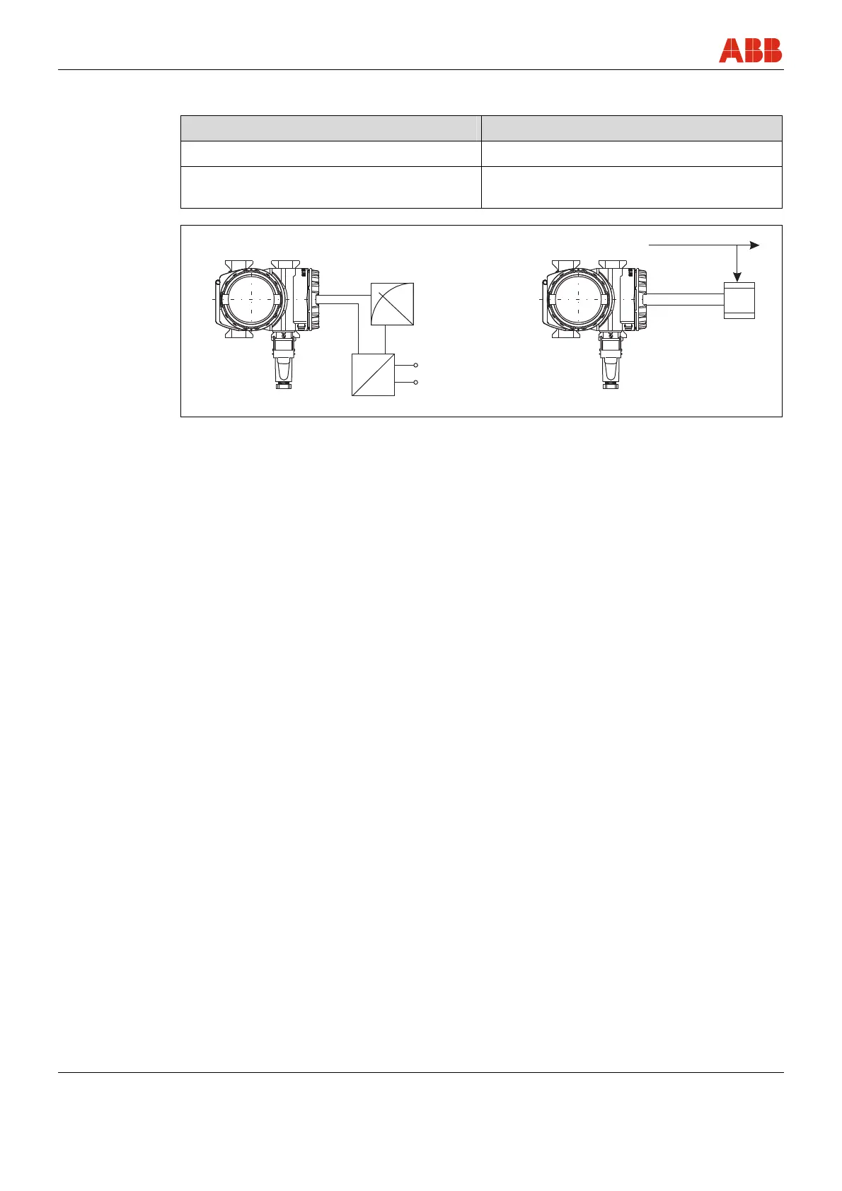 Fig. 8: Connection diagram, left: 4 … 20 mA current output with HART communication protocol