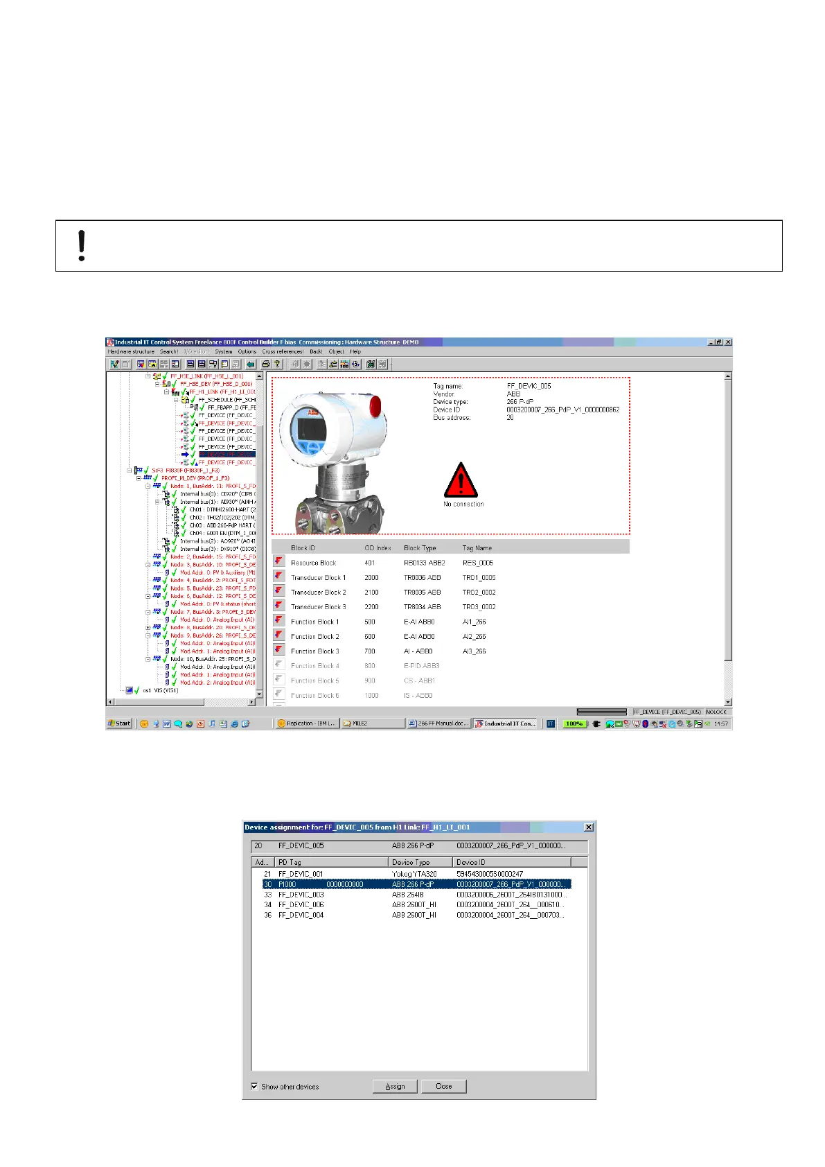 The second part of the operations is executed in ON-Line. ON line means that the real device has to be connected on the FF H1 network to the host.