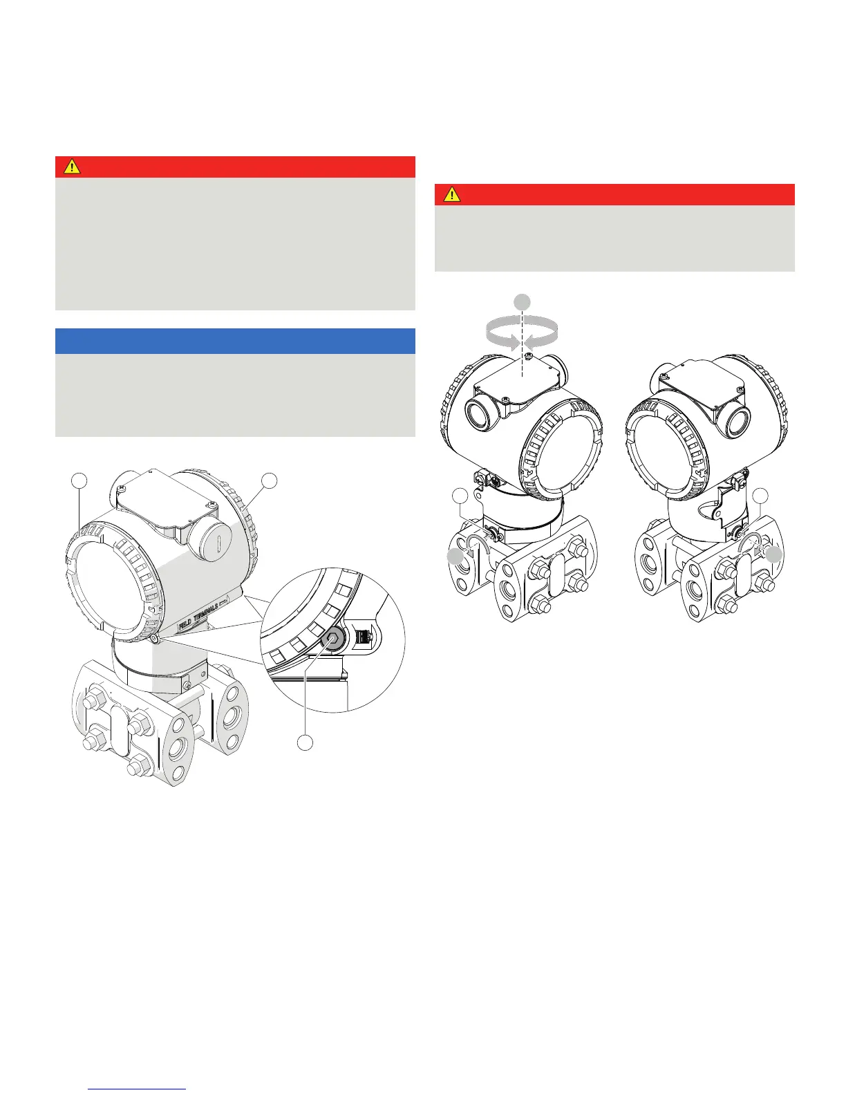 Only loosen the screws shown when rotating the transmitter