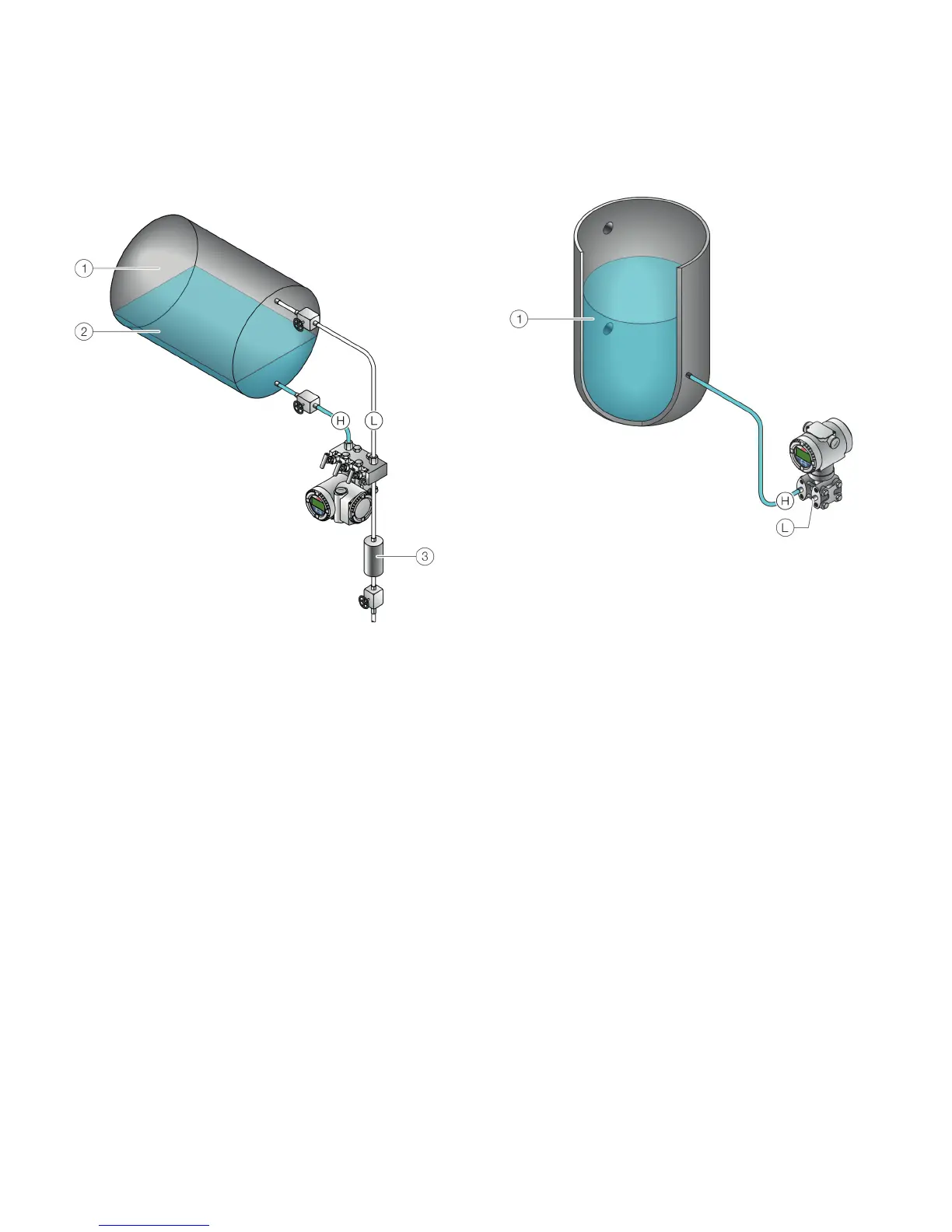 • Connect the high pressure side ‘+’ of the transmitter to the