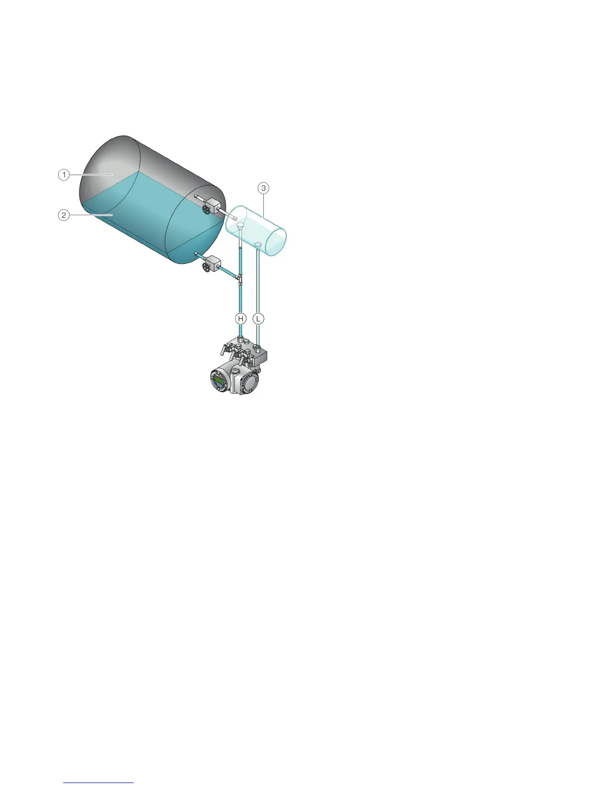• The low pressure side ‘–’ of the transmitter up at the tank.