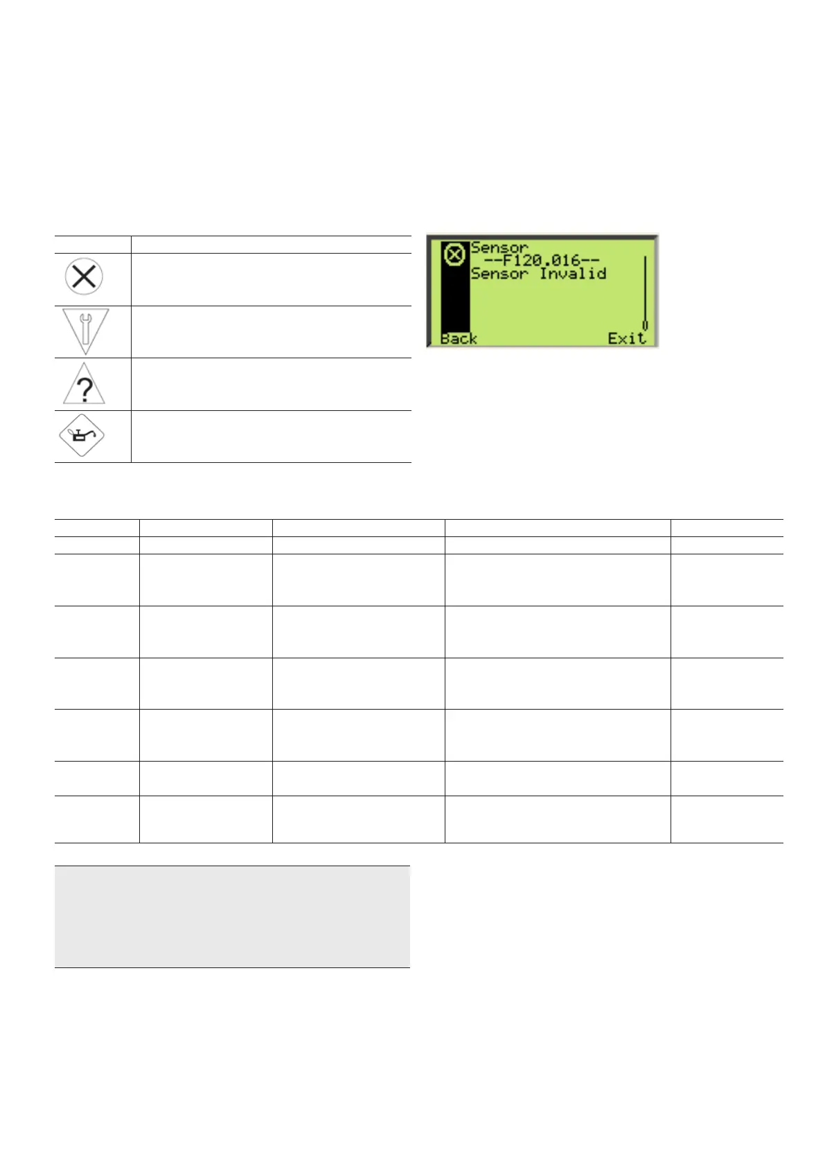 provides information about where to look for the error. There are the following areas: Electronic, Sensor, Configuration, Operanting