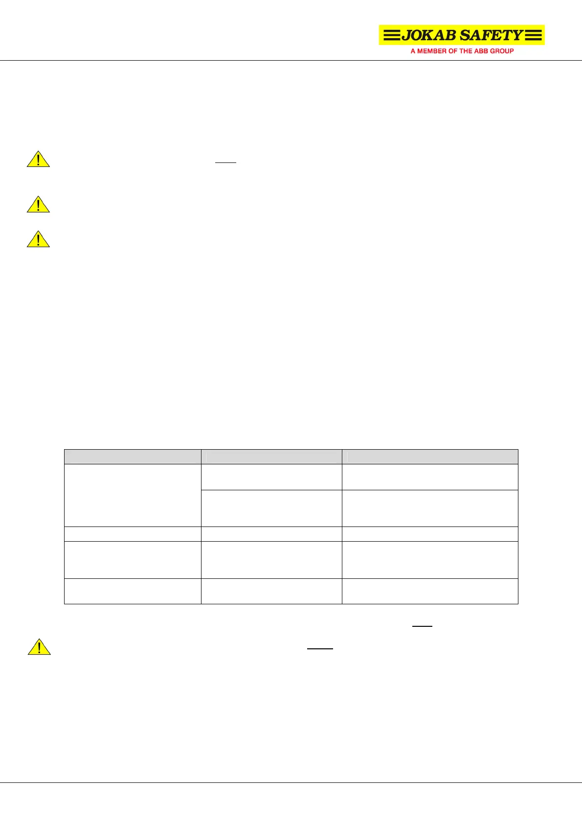 Warning! In case of breakdown or damage to the product, contact Jokab Safety. Do not try to repair
