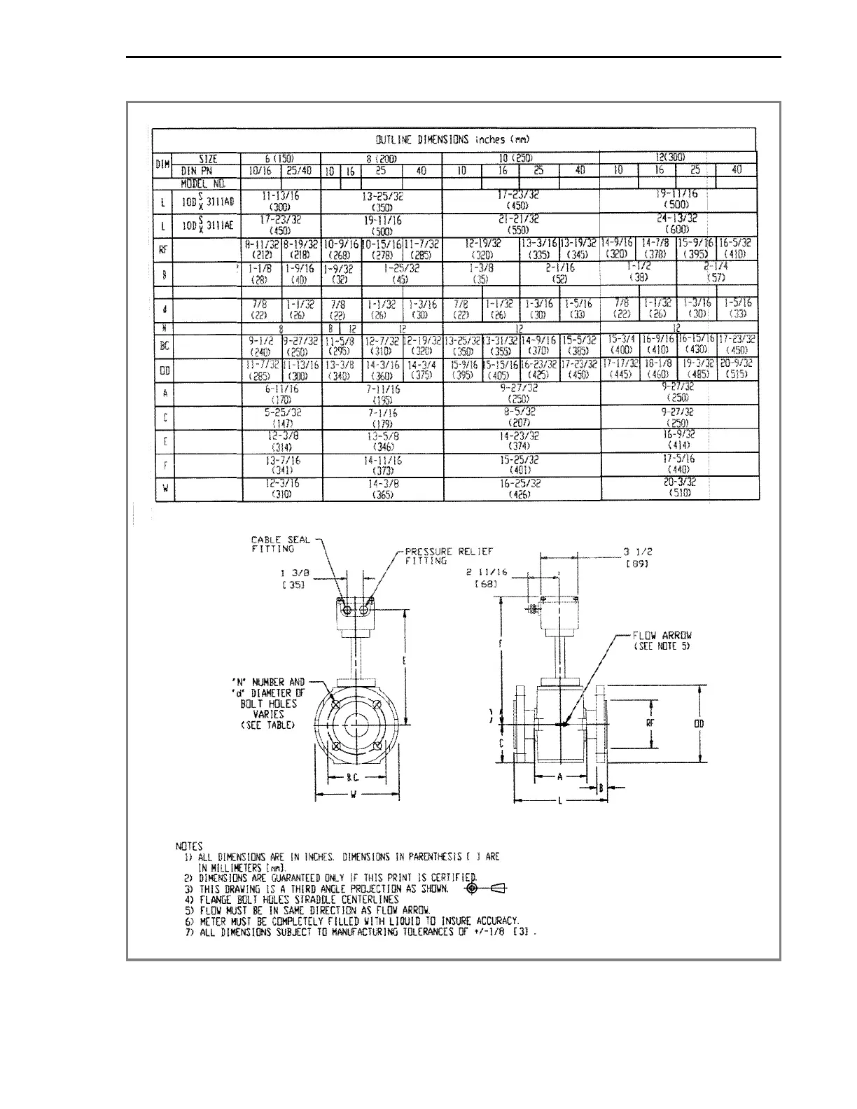 FIGURE 2-8. OUTLINE DIMENSIONS, 6 - 12 INCH FLOWMETER WITH