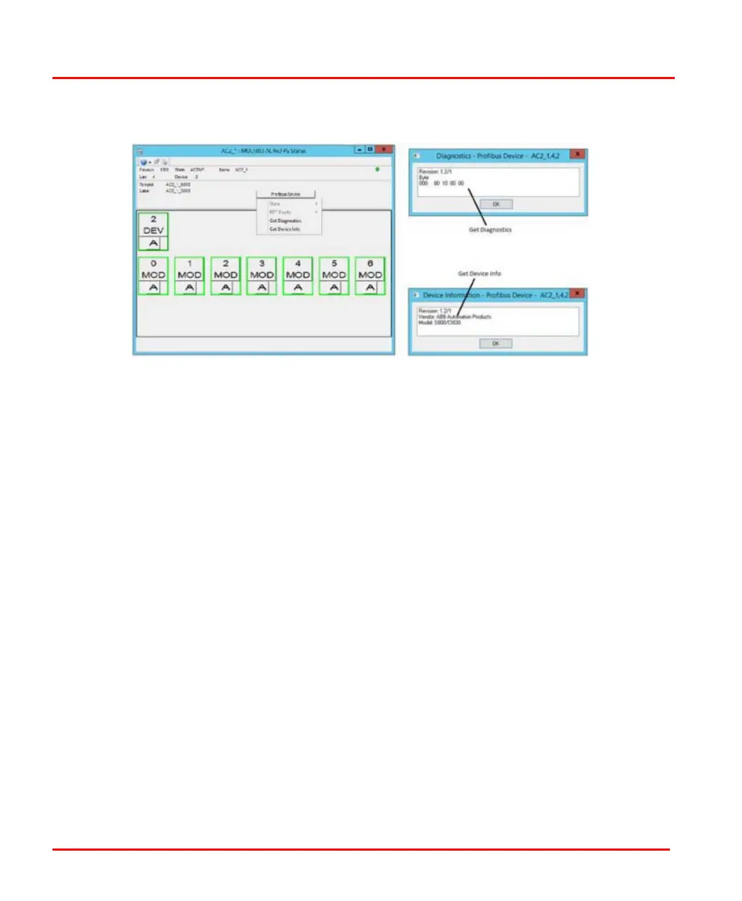 Figure 76. PROFIBUS Device Get Diagnostics and Get Device Info displays