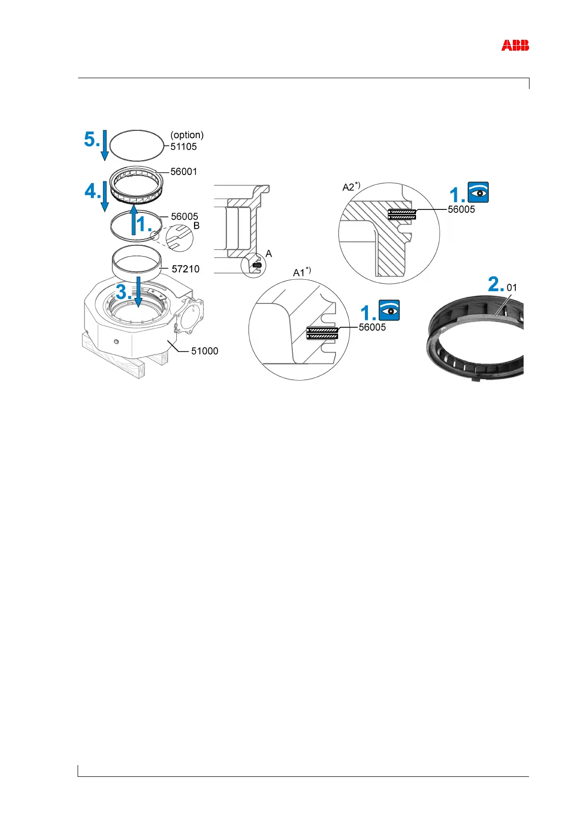 1. Fit the lamellar sealing ring (56005) in the correct slot (see detail A1/A2). When doing this,