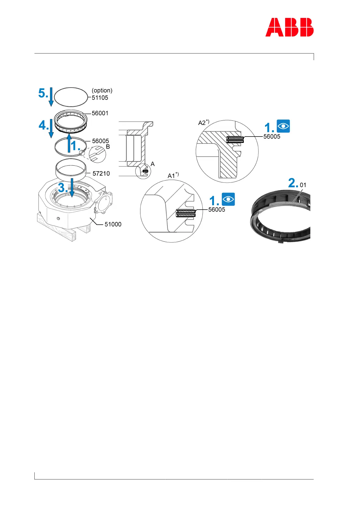 1. Fit the lamellar sealing ring(56005) in the correct slot (see detail A1/A2). When doing