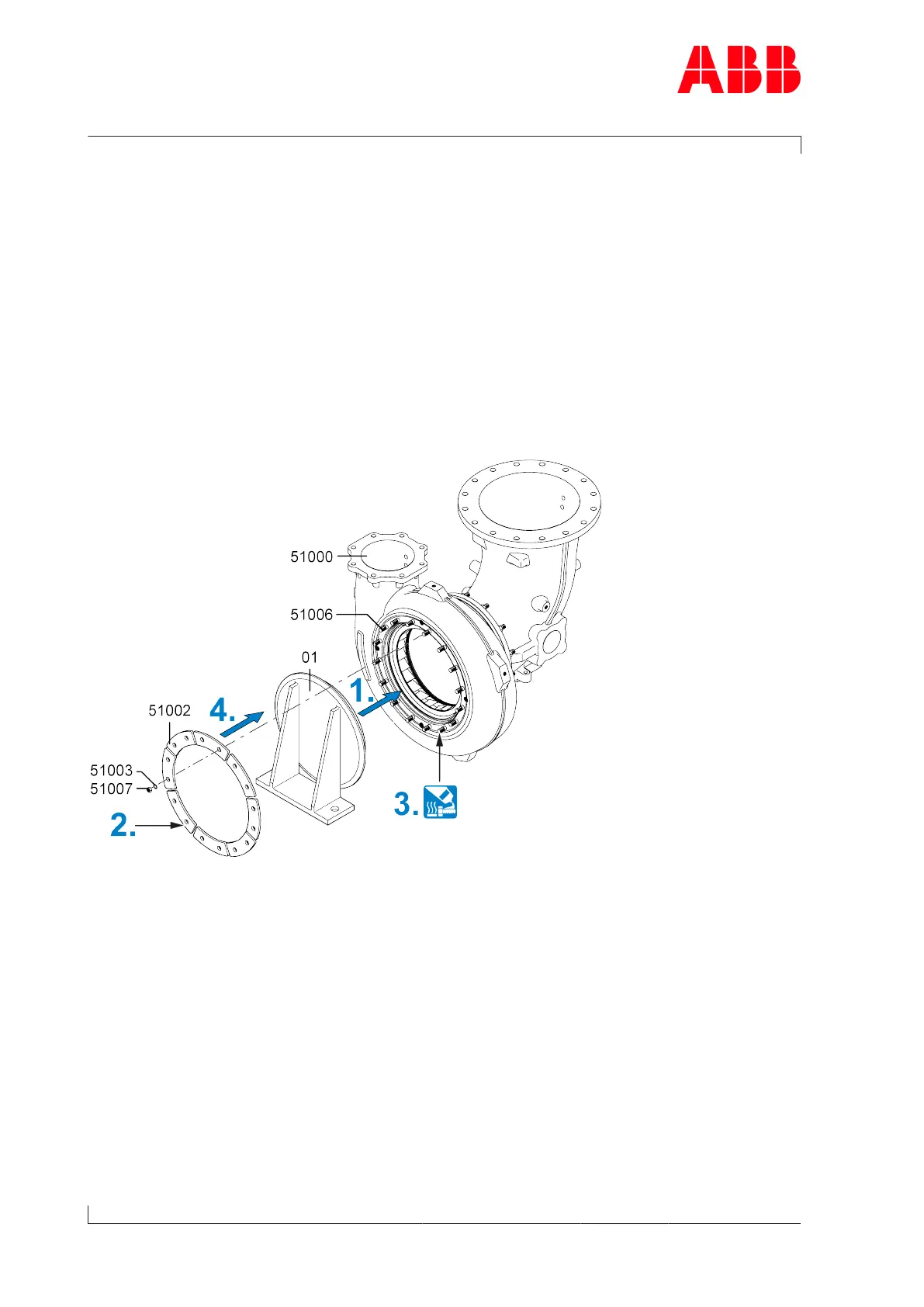 4. Fasten cover plate (01) to turbine casing (51000) with fastening strips (51002), Verbus