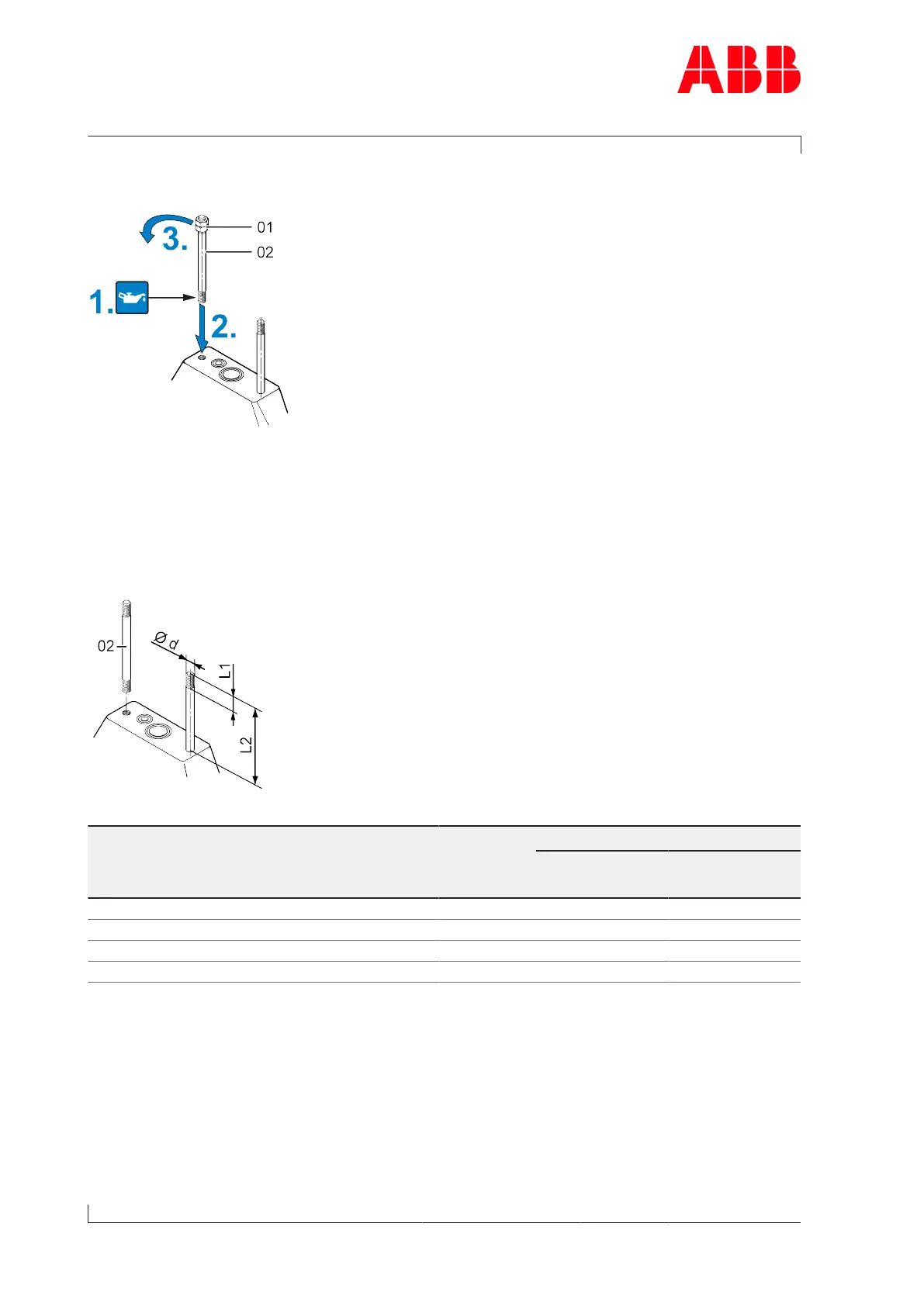 1. Lightly oil the surfaces of the threaded rods (02) to be screwed in.
