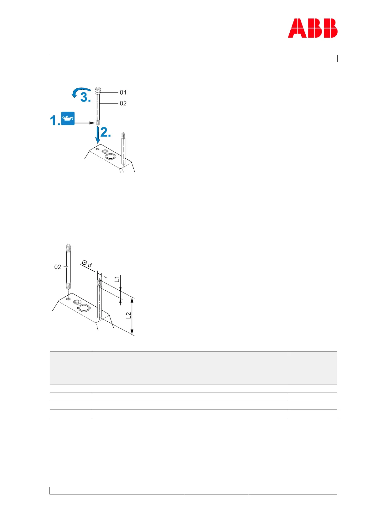 1. Lightly oil the surfaces of the threaded rods (02) to be screwed in.