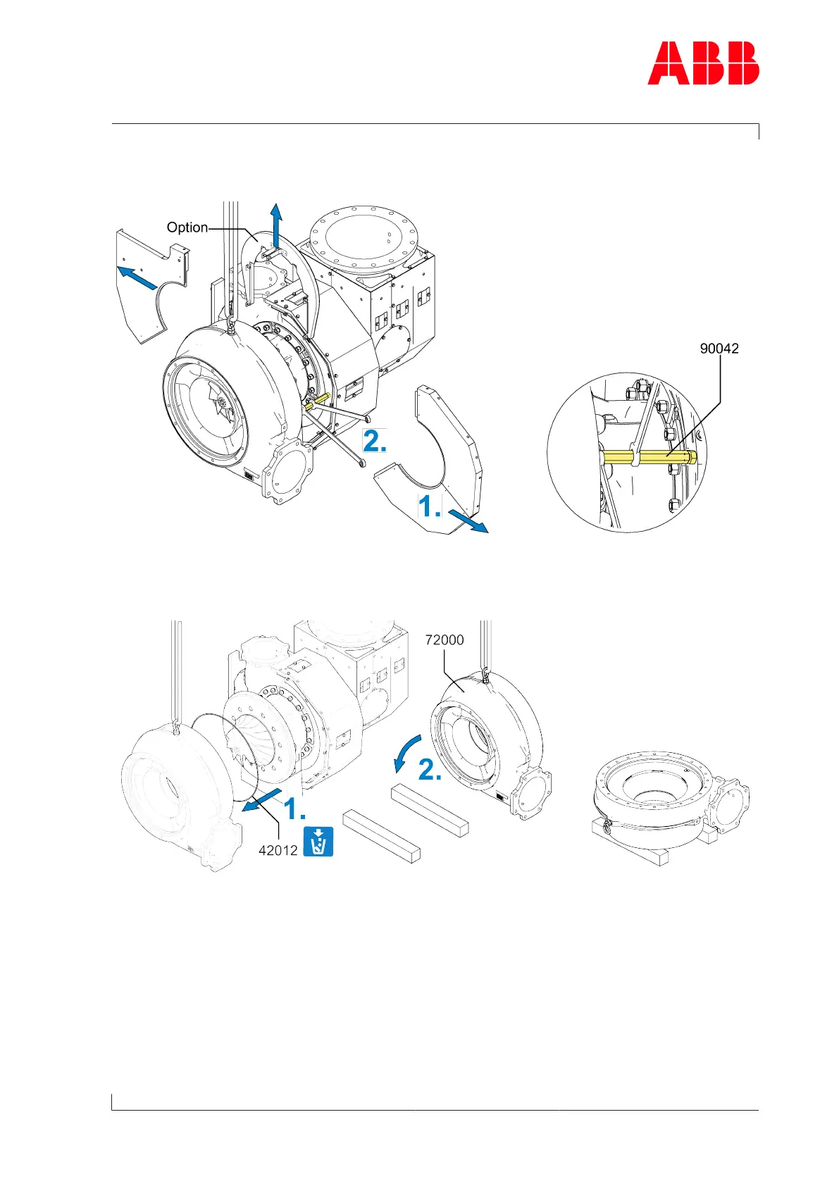 If the compressor casing cannot be loosened, it can be pressed off against the turbine cas-