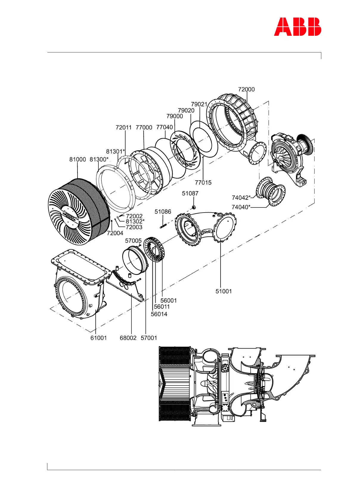ABB A165-L34 - View of Turbocharger with Part Numbers; Fig. 64: View of Turbocharger with Part Numbers