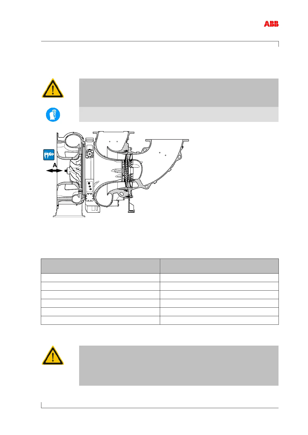 The axial clearance (A) of the rotor should always be measured before and after service work