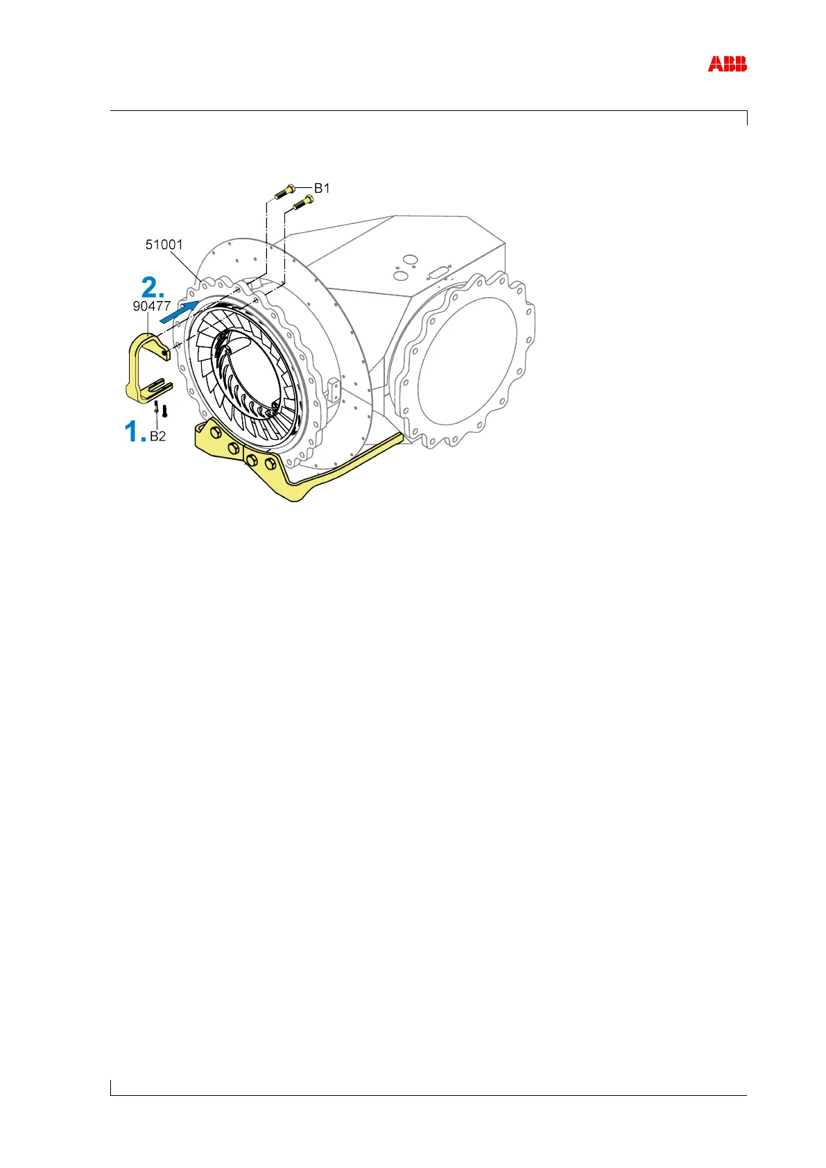 2. Fit the nozzle ring holder (90477) with screws (B