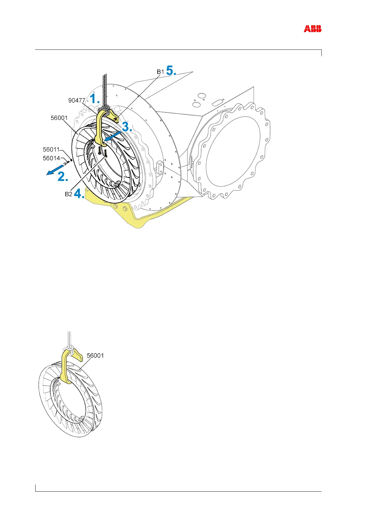 1. Loop around the nozzle ring holder (90477) with the lifting gear and secure it to the crane.