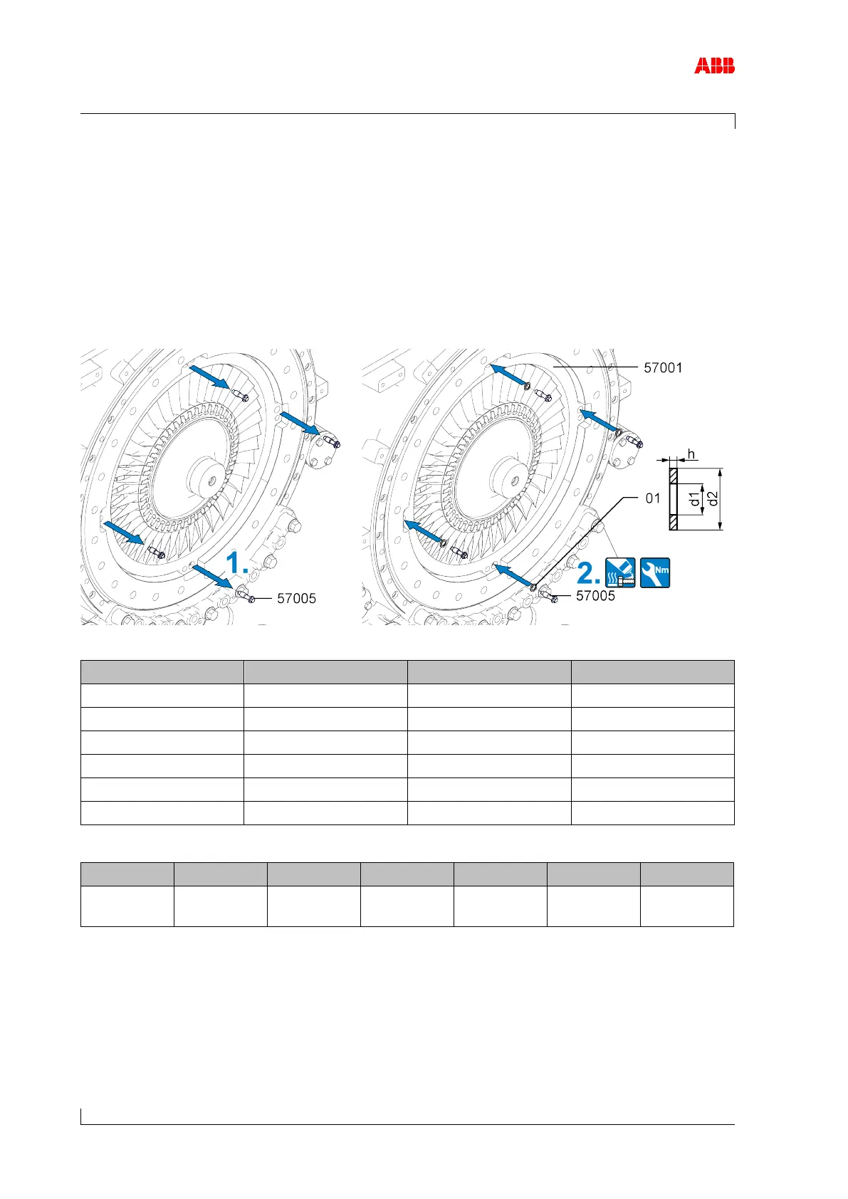 vided in accordance with the following table. These washers (01) are not supplied by ABB.